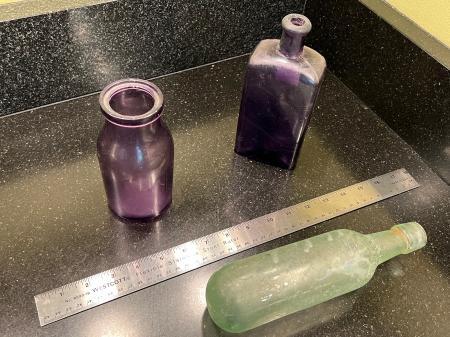 Purple glass: Whiskey bottle, purpled from sun, 1890s. $50.00