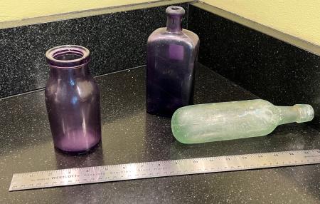 Purple glass: 1/2 pint cream bottle, purpled from sun, from Tombstone, AZ. $50.00
