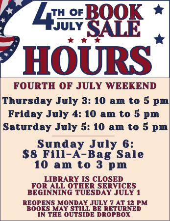 Please note: The library will be closed for all regular services from July 1st through July 6th, though books can still be returned via the outside drop box.