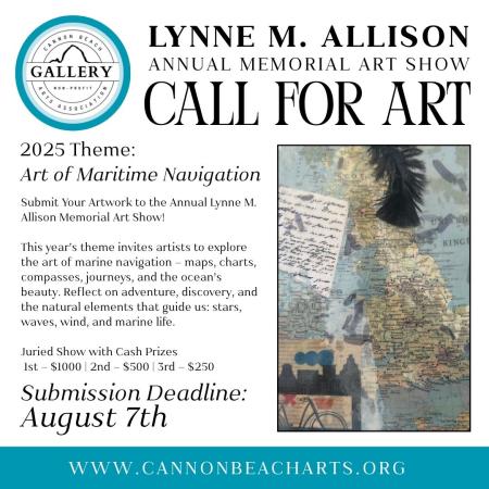 Submission deadline: Drop off artwork August 7, 2025 at the Cannon Beach Gallery, or Submit online through our website.