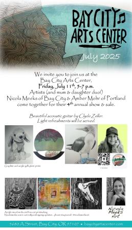For the month of July, the Bay City Arts Center is displaying the work of Amber Mohr, Nicola Meeks, and Rod Whaley. Please join us for our artist opening reception this Friday, July 11th 5-7 PM.