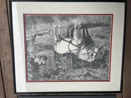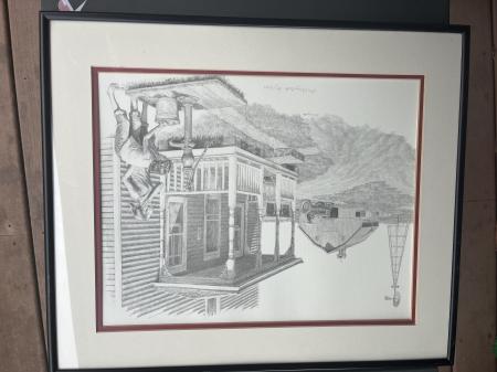Indiana artist Don Gretak- nicely matted and framed behind glass depicting a midwest horse logging scene (#125/500) and a midwest farm scene (#90/500)… sorry if pics are not right side up- old guy tech inabilities 🙂