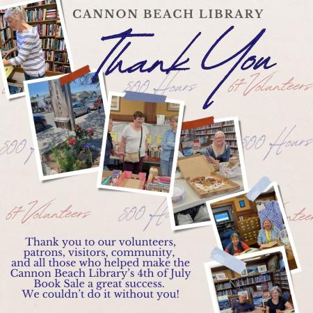 Thank you to our volunteers, patrons, visitors, Cannon Beach community, and to all those who helped make the Cannon Beach Library’s 4th of July Book Sale a great success. You all rallied for our nonprofit library, and we couldn’t do it without you!