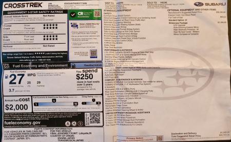 2024 Subaru Crosstrek Wilderness for Sale by Owner. 13,900 miles. Clean. Towing Package added by Dealer; towing capacity 3,500 lbs. Includes Thule Crossbar Set, Aero Extended, Purchased from Subaru. Apple CarPlay and Android Auto. Cordless Charger. All-weather mats. Has had all regular maintenance. Kept in the garage most of the time. Original window sticker is included in photos. Color is Sun Blaze Pearl. As noted on the sticker, this car is Consumer Reports Recommended. Price is $29,800.