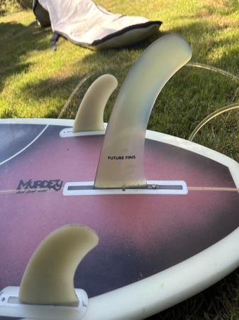 Used and in great condition, custom-shaped Murdey 8′ x 22″ x 2.6″ surfboard for sale in Nehalem. Water-tight, no dings or repairs, comes with bag, futures fins, leash.