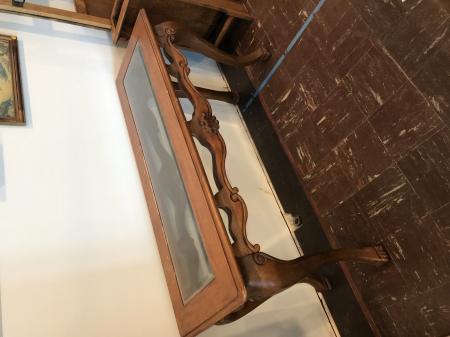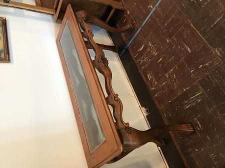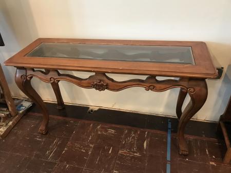 19” deep x 54” wide x 30.5” tall. Glass top is 10.5” deep x 45.5” wide.