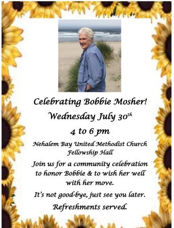 Join us for a community celebration to honor Bobbie & to wish her well with her move to Montana to be closer to family.