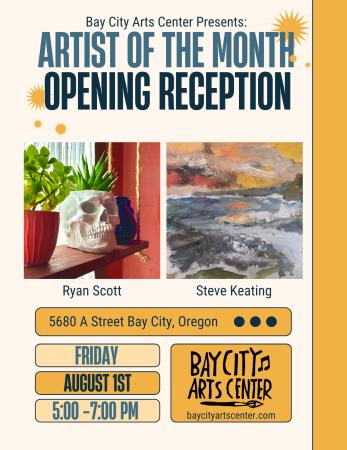 Join us this Friday, August 1st to celebrate the work of two local artists, Ryan Scott and Steve Keating!