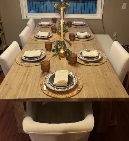 Charming rustic acacia extendable dining table for sale! Purchased last November 2024, in prime condition, no blemishes or scratches. I love this table, but it is too big for our space. Great quality, very durable, and easy to extend. *Selling table only, not chairs*