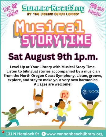 Level Up at the Cannon Beach Library this Saturday, August 9th at 1 p.m. with Musical Story Time! Listen to bilingual stories, accompanied by oboist Laurie Swanson from the North Oregon Coast Symphony. Listen, explore, and stay to craft your very own harmonica. All ages are welcome.