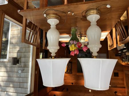 Measurements: 30.25” top of finial. 20” top of decorative stem. Lamp Shades: 8.5” Wide at Top x 14” Wide at Base x 10.25” T