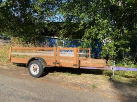 FOR SALE: Utility Trailer; newly rebuilt with pressure-treated lumber, removable side panels.