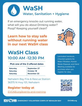 Take Our WaSH Class Multiple class dates offered in 2025: From 10:00 AM – 12:30 PM Saturday, September 27 Saturday, October 18 Saturday, November 22