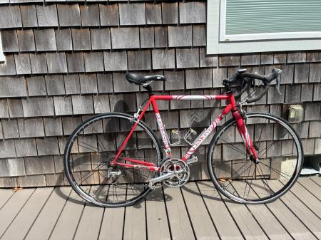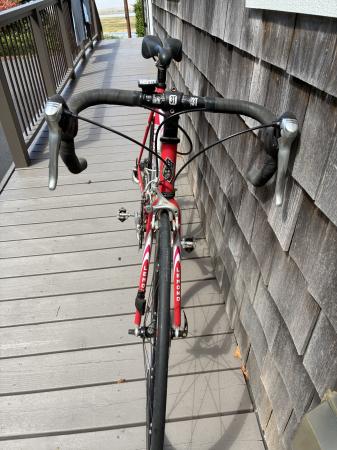 Has not been ridden for a while, so likely needs a tune up, but otherwise in good condition. Frame size 53w and wheel size is 700. Shimano Ultegra components. An excellent lightweight road bike.