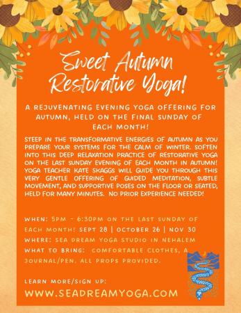 Join Sea Dream Studio for Sweet Autumn Restorative Yoga!