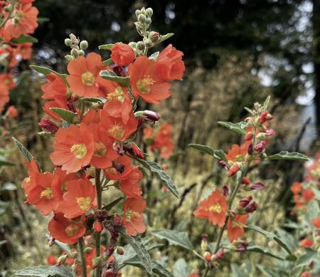 The globe mallow ‘Newleaze Coral’ is, to me, one of the summer jewels of the WG. We’ve had the same plant for six years now and it’s asked only full sun, good drainage and space to do its thing. Nothing, I mean nothing else in the WG has a flower color quite like this particular sphaeralcea selection, a delicious shade of orange-peach-apricot that even the pix below doesn’t quite capture. If you’ve room for this 5’ x 2’ semi-woody perennial that blooms for easily three months, put it on your list.