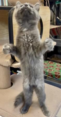 This active and curious kitten loves to climb, chase and play with his friends. If there is a swirly string, a ball or an empty box, TaLa will contentedly play for hours. He is good natured and sweet, and he would love to be in a fun household with children, other cats, kittens or gentle dogs. TaLa will fill your home with hours of rollicking entertainment and reward you with cuddles and purrs.