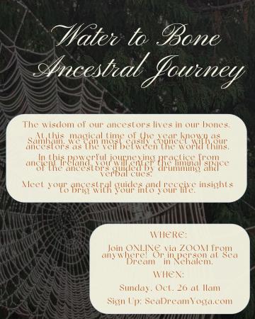 AND don’t miss our annual “Water to Bone” ancestral journeying practice for Samhain (close to Halloween!), which can be attended both online or in person!