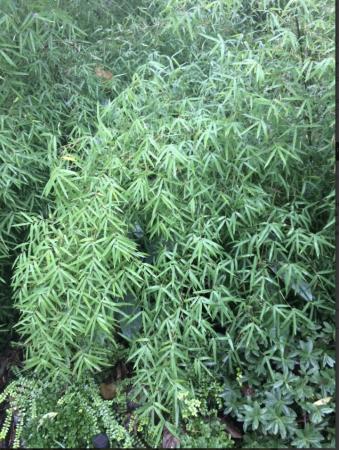 Our last plant is somewhat dainty in appearance but rugged and undemanding. Clumping bamboos are different from running bamboos, the devils who devour property. Instead, clumpers just fill out slowly and don’t send out runners. We’re selling the delicate-looking Borinda angustissima, little leaf clumping bamboo, a soft green fountain topping out at 10’ and @4’ wide. We’ve got it in a lot of shade but it would also enjoy a nice big sip of morning sun.