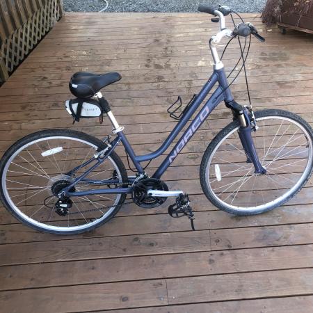 Bike has been ridden less than ten times and has always been stored inside. Great ride for around town/city. No crashes, tires inflate and seat bag included. $225