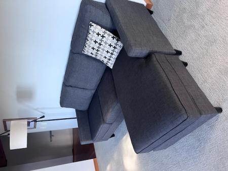 The lounge portion of this sofa is interchangeable and can be moved to the right side of the couch or the left side