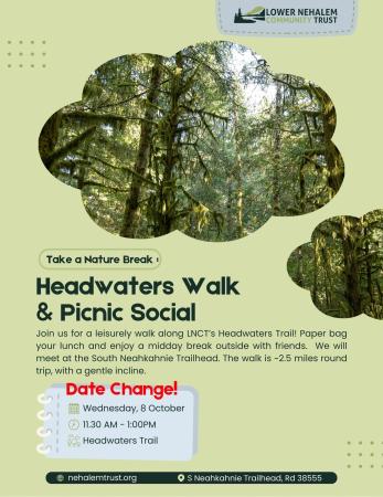 Meet at 11:30AM at the South Neahkahnie Trailhead* for a walk down LNCT’s Headwater’s trail to our stewardship benches. Paper bag your lunch and enjoy a midday break outside with friends. The walk is ~2.5 miles round trip, with a gentle incline.