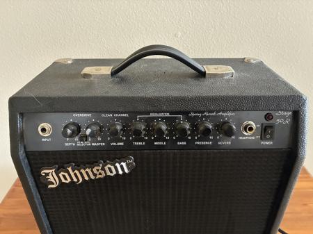 Johnson Stage 50R – 30 watt guitar amplifier in good working order. Dimensions are 14 X 6-1/2 X 16 with 10” speaker.
