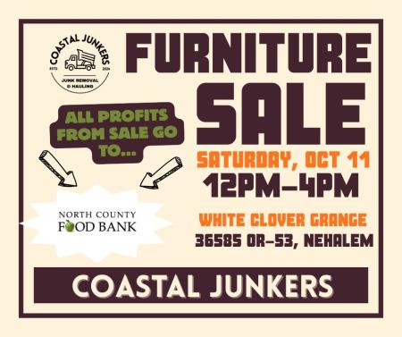 Coastal Junkers Furniture Sale from 12-4pm at White Clover Grange in Nehalem, OR! No items will exceed $100!