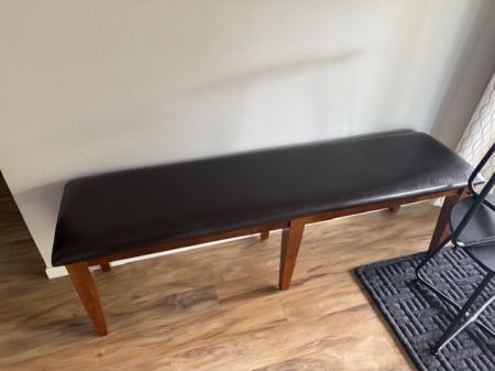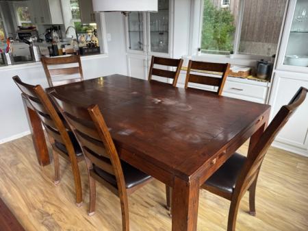Table is 72″ x 44″ with a leaf to make it extendable.