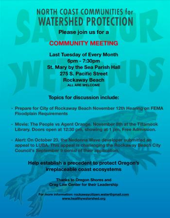 *Scheduled for Wednesday, November 12, at 6:00 pm at Rockaway Beach City Hall