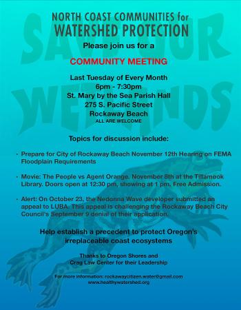 1. Prepare for City of Rockaway Beach November 12th Hearing on FEMA Floodplain Requirements.