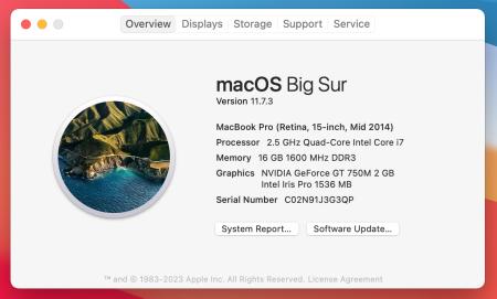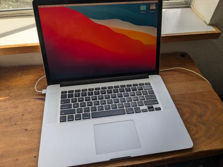 Used Macbook Pro 15″ laptop for sale. Well taken care of, with AC power adapter and original box. The only issue is that the built-in speakers are a bit worn out (but still work). Headphone jack, USB ports, HDMI and power connections all work perfectly.