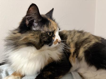 Both gals are extremely outgoing, people-oriented kitties that adore attention, being pet, etc. Both will be wonderful companions for someone, but they may need to be the only cat in the household. The fosters are still evaluating this and more could be learned by a “Meet & Greet” on an individual basis.