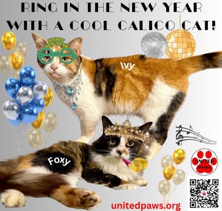 Meet Ivy & Foxy, United Paws’ Cats of the Week. These calico beauties were abandoned when their guardian moved. A neighbor fed them as outside cats, and reached out for help. United Paws quickly stepped in to house and feed these lovely cats.