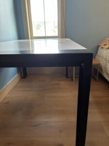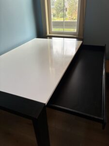 Drafting table is 68” wide, 37” deep and 31” tall. Brand is Drip Depot. $150.