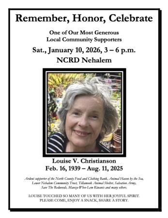 At the North County Rec. District, NCRD, 9th Street in Nehalem.