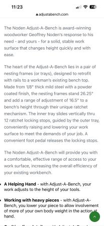 Selling a “Noden Adjust-A-Bench” – see their link at www.adjustabench.com for videos and full description.
