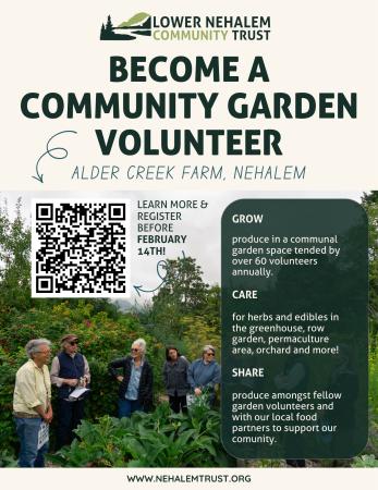 Visit our webpage to learn more: www.nehalemtrust.org/alder-creek-farm/community-garden/