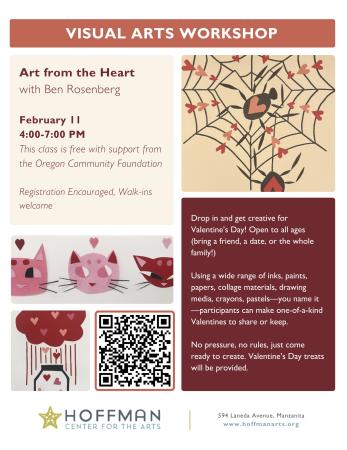 Drop in and get creative for Valentine’s Day! Open to all ages (bring a friend, a date, or the whole family.) Using a wide range of inks, paints, papers, collage materials, drawing media, crayons, pastels—you name it—participants can make one-of-a-kind Valentines to share or keep. No pressure, no rules, just come ready to create. Valentine’s Day treats will be provided.