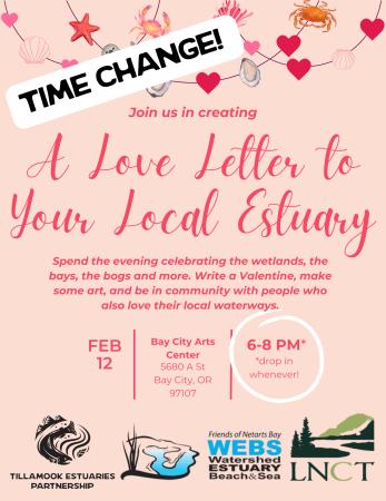 What’s love got to do with… wetlands!? Drop into Bay City Arts Center on Thursday night, February 12th to hang out and craft valentines for your loved ones AND for your local estuary!