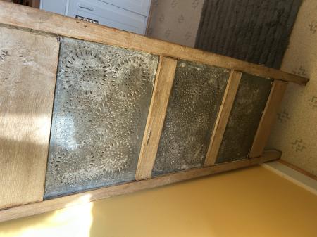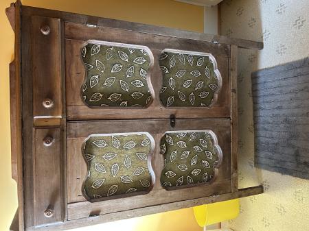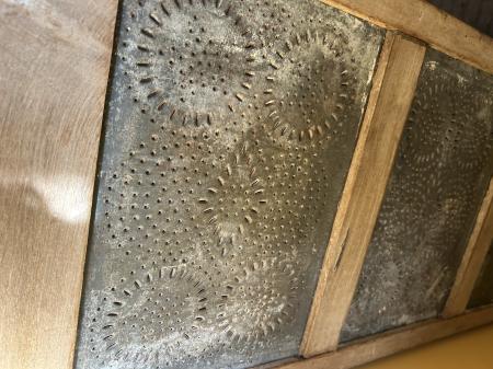 Antique wooden storage hutch w/perforated tin on the sides