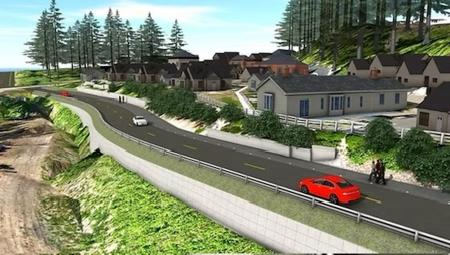 FURTHERMORE, MOST IMPORTANTLY, THERE IS NO WEST SIDE RETAINING WALL, THE LONG-TERM “SURE FIX” FOR SLIDES, ROAD RAVELING AND THE WIDEST COLLECTOR AND SAFEST FOR PEDESTRIANS AS WELL AS BIG VEHICLES SHARING A NARROW ROAD. REDESIGN.
