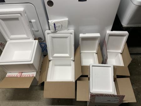 Styrofoam Shipping Containers. Clean, used for shipping medicine. Freezer bags also available.