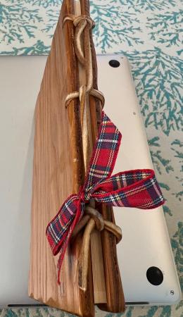 * Materials: Typically features heavy solid wood covers (often pine or walnut tones) bound with leather thongs or strings.