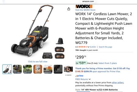 Nearly new small electric lawnmower. Bought just last summer but no longer needed as we took out our lawn.