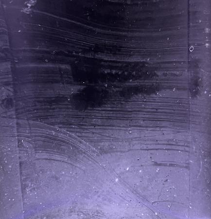 The depth of color change in individual pieces is determined by the amount of manganese used in the batch of glass in a given run; thus, some pieces attain a deep purple color while others are a lighter amethyst color. Flaking and chipping are common and purple glass. Within reason these imperfection should not detract from the value of an item in addition, small flaws created in old manufacturing processes, do not take away from the value of the item, but add to its character and stand as a testament to its antiquity.