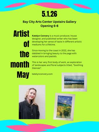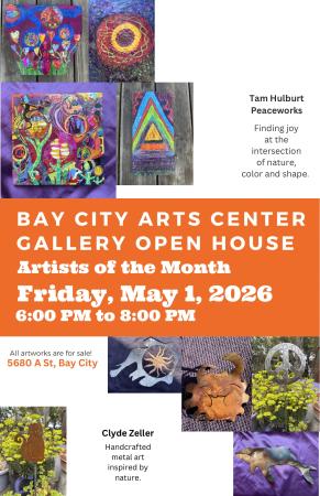 Friday May 1st artists of the month opening at Bay City Arts Center 6-8.