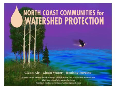 This month, North Coast Communities for Watershed Protection would like to thank the Oregon Shores Conservation Coalition, Beyond Toxics, the Wild Salmon Center, and the Crag Law Center for working with us. NCCWP wants no more logging and pesticide use in community drinking water sources regardless of who owns the land, and it wants an end to pesticide applications near where people live, work, and recreate. Safe drinking water and clean air are part of the public trust that we all are entitled to have.