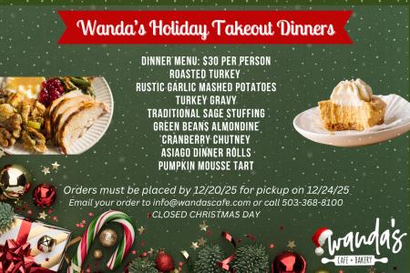 PREORDER WANDA’S CAFE HOLIDAY DINNERS TO HEAT AND EAT AT HOME BEFORE 12/20/25