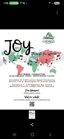 Sunday afternoon at 3:00, the Cannon Beach Chorus will present their Christmas Concert in the church’s sanctuary. It’s always great music and a really “tasty” intermission.